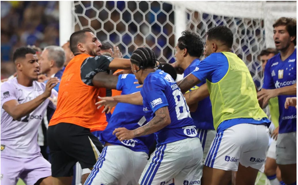 One example came during the 2026 Campeonato Mineiro final between Cruzeiro and Atlético Mineiro, where a mass confrontation erupted (after a controversial challenge).