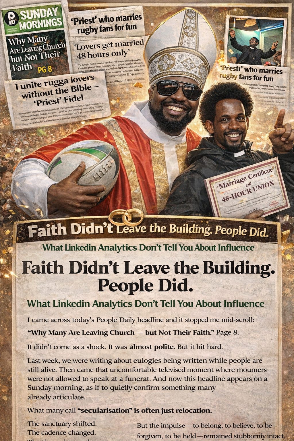 Somewhere between Kangemi, Kawangware, and City Stadium, you’d see a procession that felt both chaotic and deeply organised — robes flowing, bells ringing, singing rising — what Nairobi folklore jokingly called