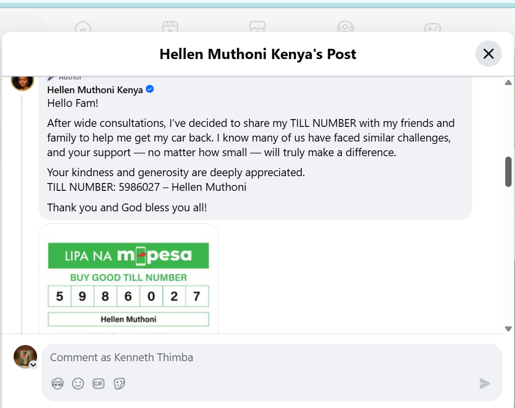 When gospel artist Hellen Muthoni asked fans to raise KSh 3 million to reclaim her repossessed car, timelines caught fire.